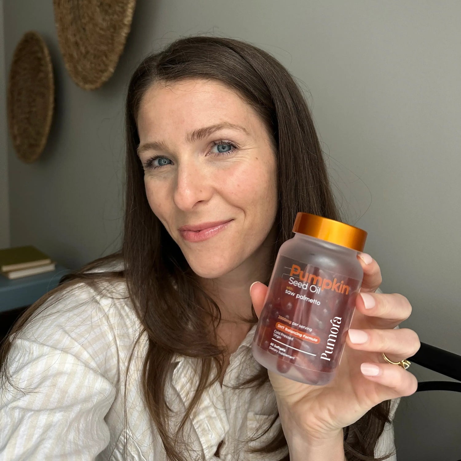 Our Pumpkin Seed Oil Softgels are supported by scientific research to block DHT, the hormone responsible for hair thinning. Rich in zinc, omega-6 fatty acids, and antioxidants, they nourish the scalp, reduce shedding, and support regrowth naturally.